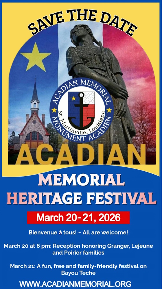 In honor of the 3,000 Acadian men, women and children who found refuge in Louisiana after British forces exiled them from Acadie.